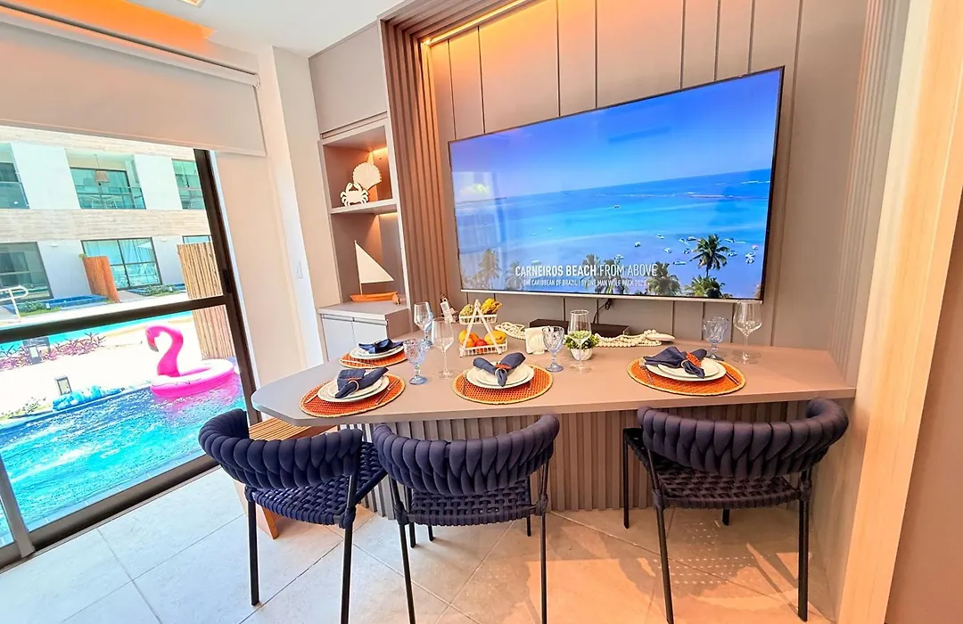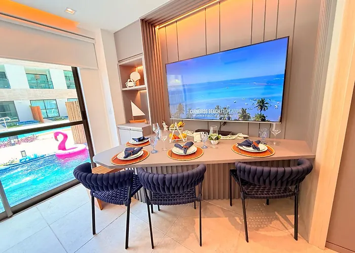 Flat B04 -Luxuoso Piscina Privativa Com Hidromassagem - Max Carneiros Suites Praia dos Carneiros is nestled in a beach area of Praia dos Carneiros, about 10 minutes by car from Estrela do Mar Square and 4.8 km from Tamandare Fort. Offering views of the pool, this apartment includes a terrace with a swimming pool.